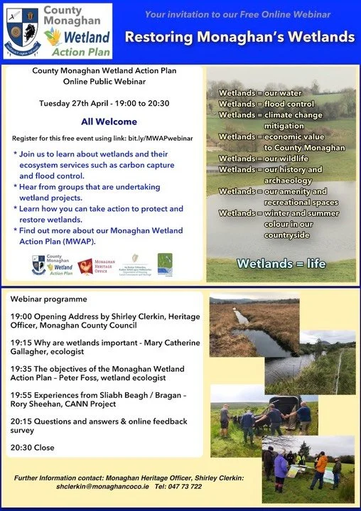 Events Patrick Crushell 15/04/2021 Events Patrick Crushell 15/04/2021 Restoring Monaghan's Wetlands - Free Webinar - All welcome! Read More