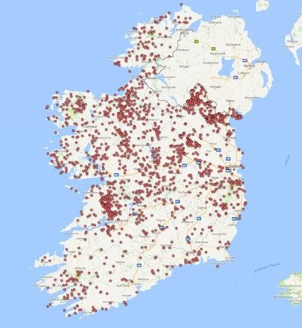 Distribution map of fens in Ireland based on data help in the Map of Irish Wetlands.